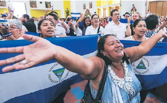 FELIGRESÍA. Un grupo de nicaragüenses, congregados en la Catedral de Managua, piden al gobierno de Daniel Ortega la liberación de los presos políticos.
